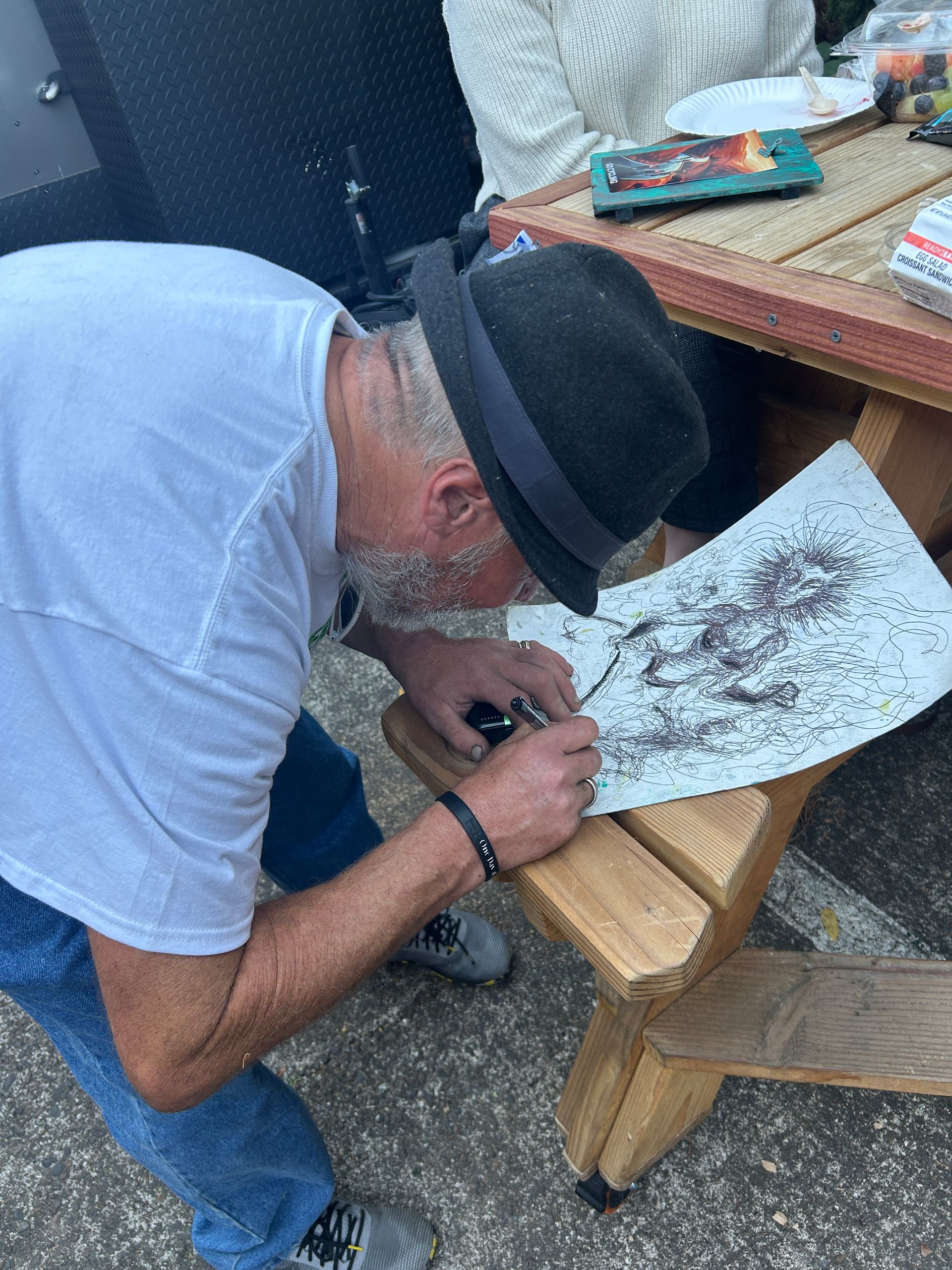 Nate lost all of his artwork due to sweeps, theft, and damage from exposure to the elements. Now that he is sheltered, he has resumed his artistic endeavors. He sold $70 worth of artwork at the Whiteaker night market event.